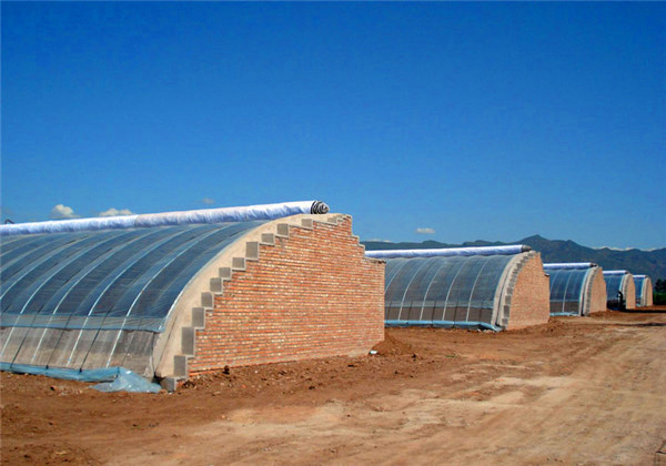前坡面夜間用保溫被覆蓋,東、西、北三面為圍護墻體的單坡面塑料溫室,統(tǒng)稱為日光溫室。其雛型是單坡面玻璃溫室,前坡面透光覆蓋材料用塑料膜代替玻璃即演化為早期的日光溫室。日光溫室的特點是保溫好、投資低、節(jié)約能源,非常適合我國經(jīng)濟欠發(fā)達農(nóng)村使用。