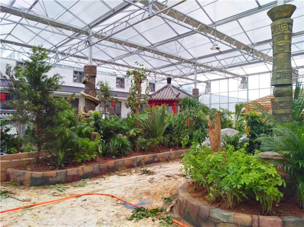 生態(tài)餐廳的結(jié)構(gòu)形式多樣,結(jié)合餐飲規(guī)模的特點(diǎn)可以在結(jié)構(gòu)上采用不同形式,可以采用標(biāo)準(zhǔn)的輕鋼結(jié)構(gòu)連棟文洛式溫室結(jié)構(gòu),也可以采用大型鋼架結(jié)構(gòu)(例如:大跨度H型鋼結(jié)構(gòu)、大跨度管桁架結(jié)構(gòu)等等)或文洛式與大型鋼架結(jié)構(gòu)結(jié)合式,根據(jù)用戶的需求不同,其外觀也可以采用造型溫室,將生態(tài)餐廳與周圍環(huán)境整合為一個(gè)整體。目前生態(tài)餐廳建設(shè)采用的覆蓋材料主要有PC陽(yáng)光板、玻璃。一些生態(tài)餐廳屋面如果設(shè)計(jì)為半采光屋頂,溫室建設(shè)造價(jià),則可以將保溫彩鋼板和PC陽(yáng)光板或玻璃間隔搭配使用,減少采光量。